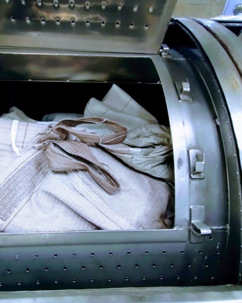 Após o processode triagem inicia-se procedimento da lavagem, contamos com duas máquinas de lavar horizontal com cesto de inox com capacidade de 250kg e 350kg.