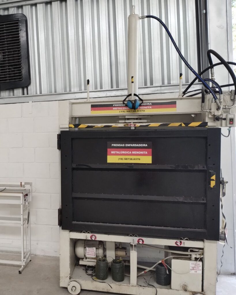 Nossa prensa hidráulica possuium sistema anti contaminação conformea norma NR10/12 tendo uma capacidade de compactação de 15t resultando numa produção de 50 fardos por hora.